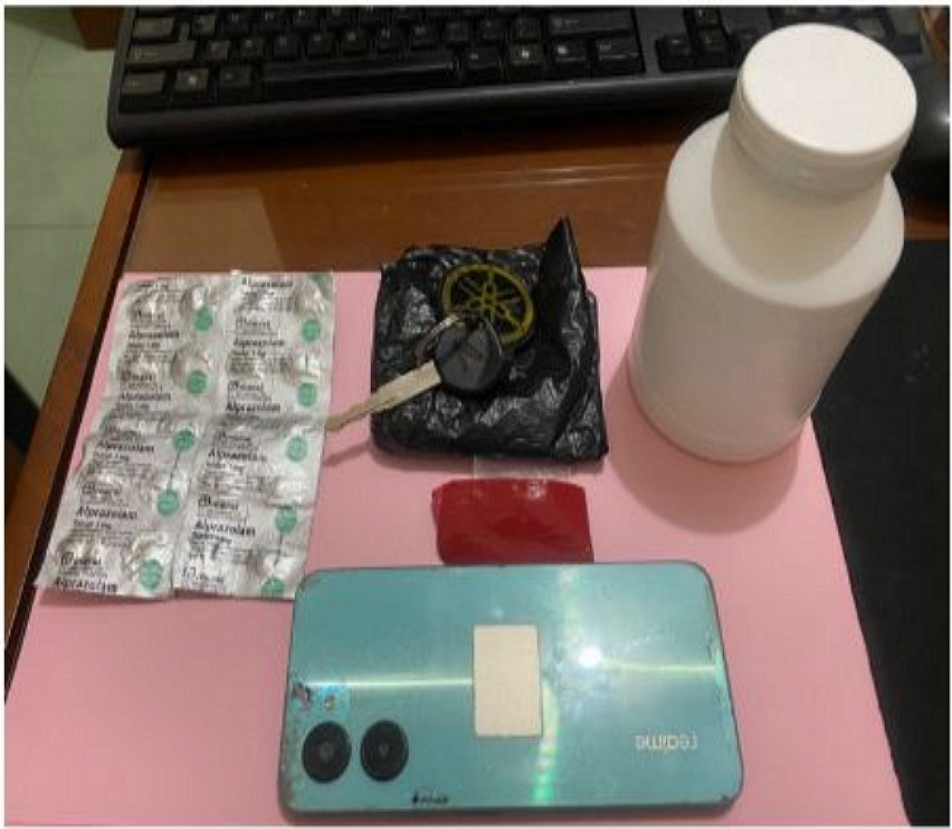 Selain narkotika, polisi juga menyita satu unit handphone Realme warna biru yang diduga digunakan untuk transaksi, serta satu unit sepeda motor Honda Beat dengan nomor polisi G-2486-ABD sebagai sarana transportasi tersangka.