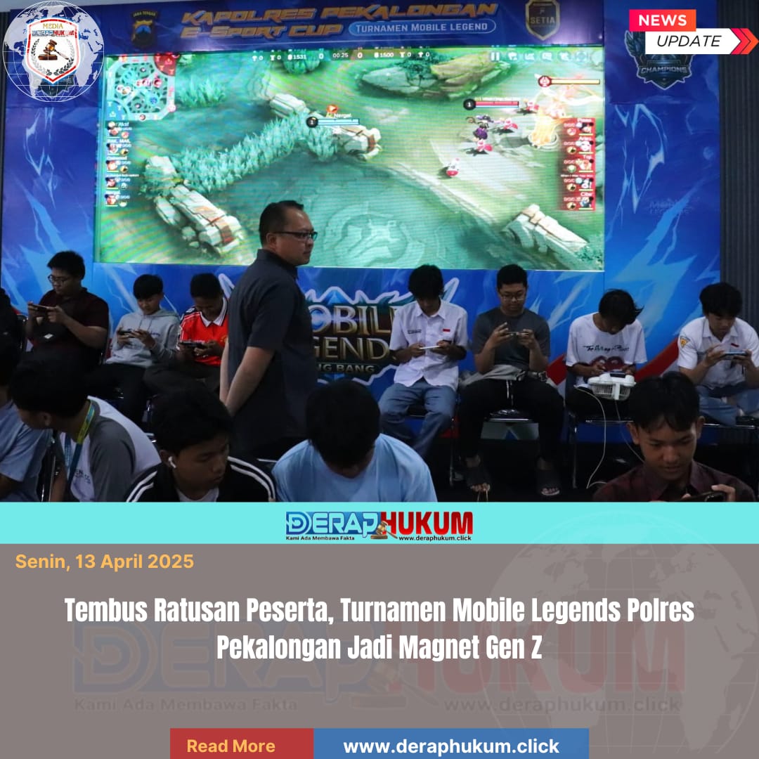 Pekalongan,Jawa Tengah | Deraphukum.click | Polres Pekalongan – Polda Jateng – Ratusan pemuda yang didominasi oleh Generasi Z (Gen Z) memadati Mapolres Pekalongan sejak Sabtu (11/4/2026) pagi. Kehadiran mereka bukan untuk urusan hukum, melainkan untuk beradu strategi dalam turnamen e-sport bertajuk “Kapolres Pekalongan E-Sport Cup: Mobile Legends”.