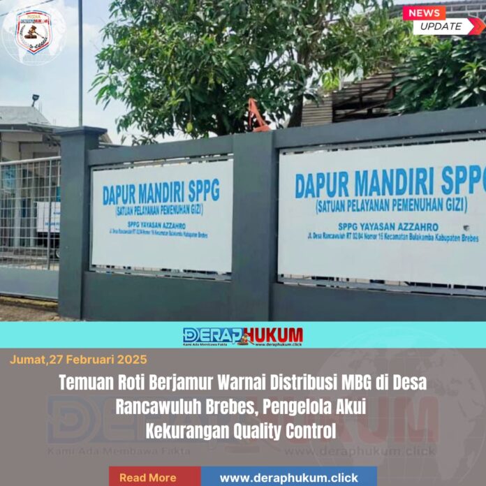 Brebes,Jawa Tengah | Deraphukum.click | Program Makanan Bergizi Gratis (MBG) di Kabupaten Brebes menuai keluhan dari warga setelah ditemukan roti berjamur dalam paket bantuan yang dibagikan kepada ribuan penerima manfaat.