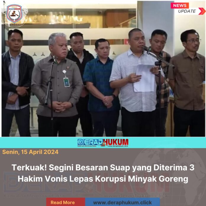 Jakarta,DKI Jakarta | Deraphukum.click | Fakta baru terungkap dalam kasus kontroversial vonis lepas terhadap terdakwa korporasi dalam perkara korupsi ekspor crude palm oil (CPO). Direktur Penyidikan Jaksa Agung Muda Tindak Pidana Khusus (Dirdik Jampidsus) Kejaksaan Agung, Abdul Qohar, mengungkapkan besaran uang suap yang diduga diterima oleh tiga hakim yang mengadili perkara tersebut.