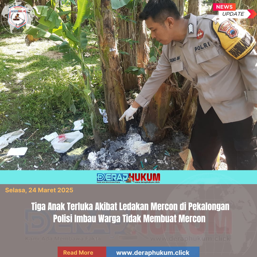 Pekalongan Kota, | Deraphukum.click | Polres Pekalongan Kota – Polda Jateng –Peristiwa ledakan kembali terjadi, Tiga anak mengalami luka akibat ledakan yang terjadi di sebuah lahan kosong di wilayah Kelurahan Kuripan Kertoharjo, Kecamatan Pekalongan Selatan, Kota Pekalongan, Senin (23/3/2026) sekitar pukul 14.00 WIB.