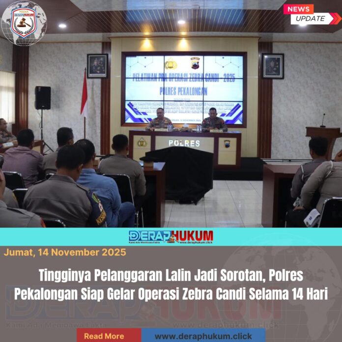 PEKALONGAN, JAWA TENGAH | DerapHukum.click | Polres Pekalongan, Polda Jawa Tengah, mematangkan sejumlah persiapan menjelang pelaksanaan Operasi Zebra Candi 2025. Kegiatan Latihan Pra Operasi (Latpraops) digelar di Aula Polres Pekalongan pada Rabu (12/11/2025).