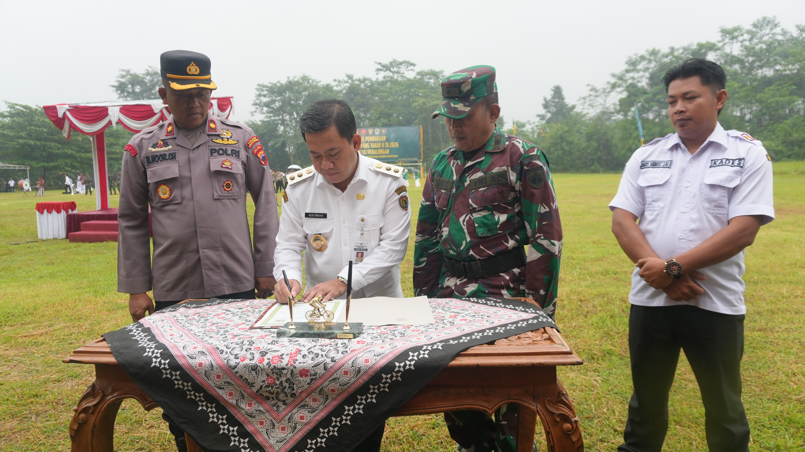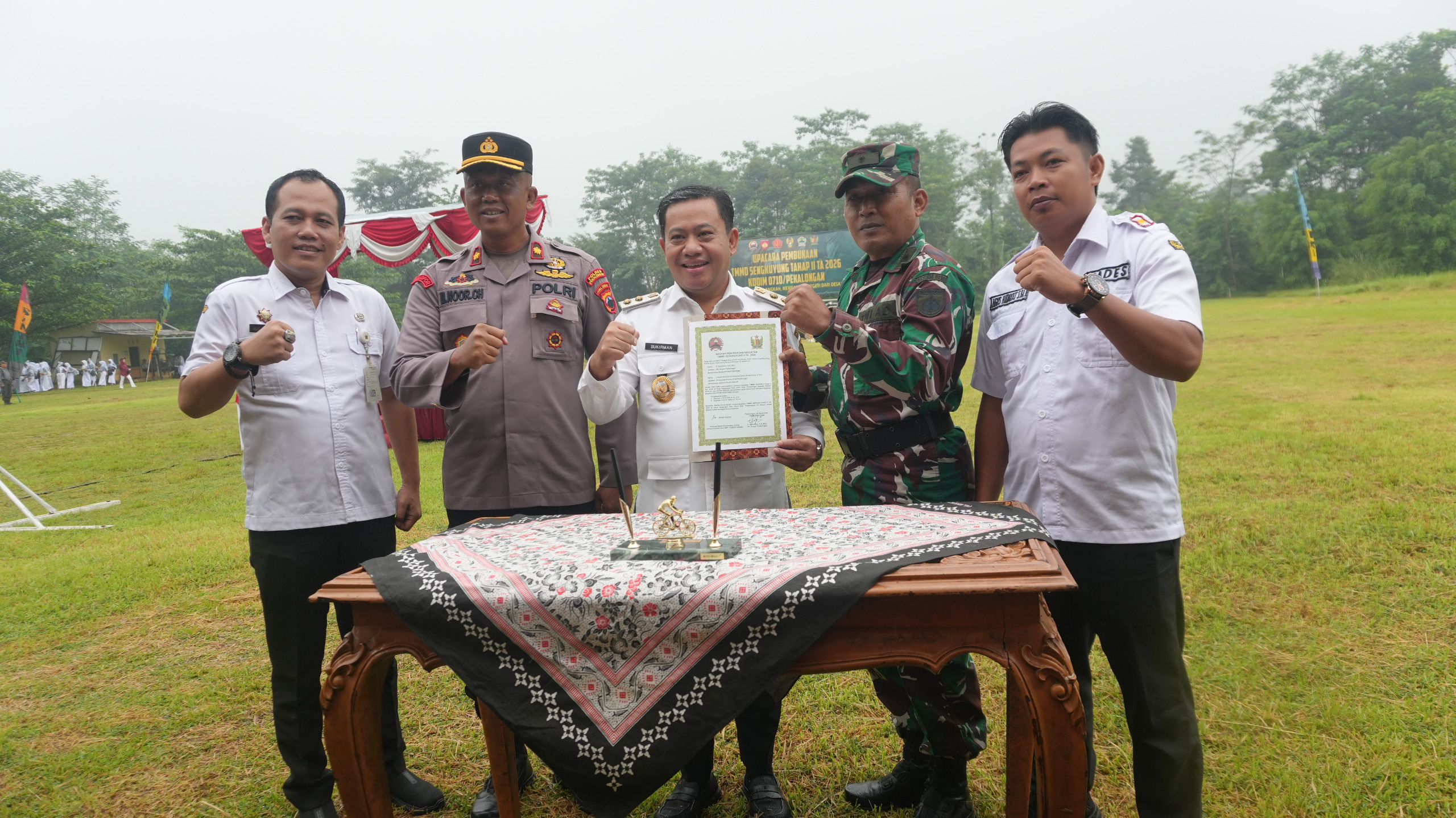 Kegiatan TMMD Sengkuyung Tahap II Tahun 2026 secara resmi dibuka oleh Plt. Bupati Pekalongan Sukirman ditandai dengan pembacaan surat Al-fatihah. Dirinya berharap seluruh rangkaian kegiatan dapat berjalan lancar serta memberikan manfaat bagi masyarakat.