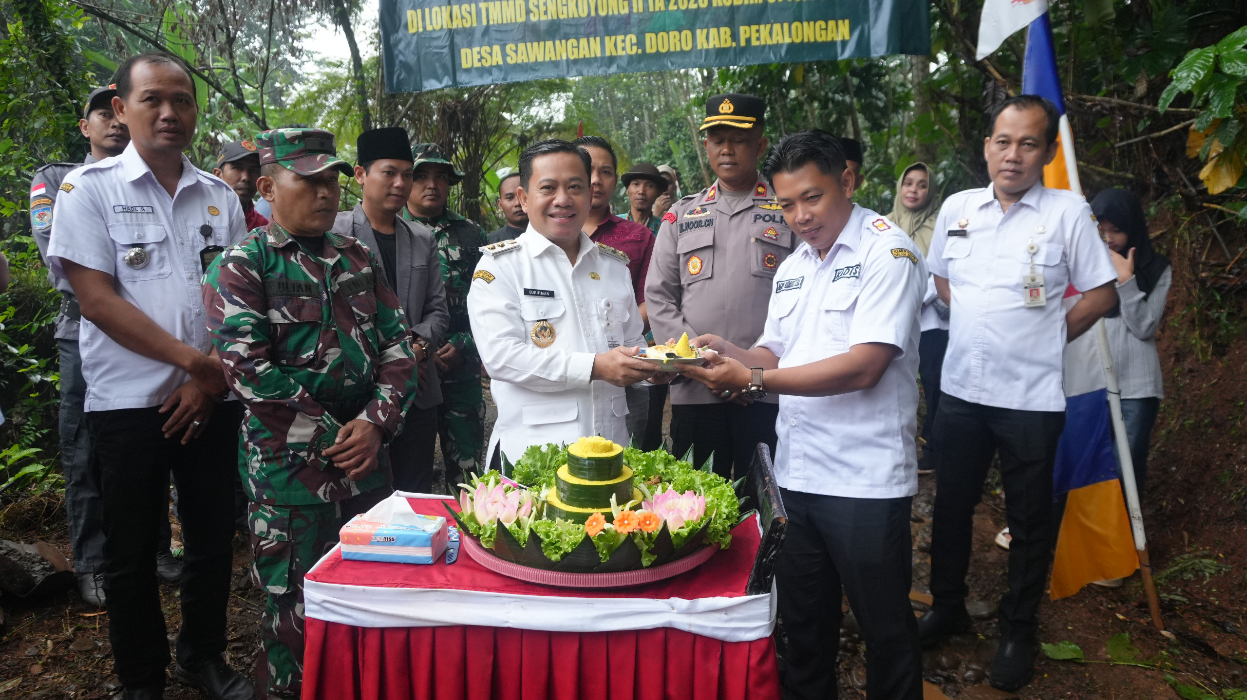 Plt. Bupati Pekalongan, H. Sukirman, S.S., M.S., dalam sambutannya menyampaikan rasa syukur atas terselenggaranya kegiatan tersebut. Ia menegaskan bahwa TMMD merupakan wujud nyata pengabdian dan kolaborasi seluruh elemen dalam membangun masyarakat.