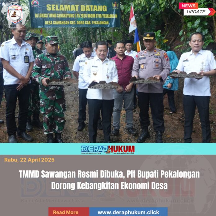 Pekalongan,Jawa Tengah | Deraphukum.click | Pemerintah Kabupaten Pekalongan bersama TNI resmi membuka program TNI Manunggal Membangun Desa (TMMD) Sengkuyung Tahap II Tahun 2026 di Desa Sawangan, Kecamatan Doro, Rabu pagi (22/04/2026). Program yang dilaksanakan oleh Kodim 0710/Pekalongan ini mengusung tema “TMMD Satukan Langkah Membangun Negeri dari Desa”.