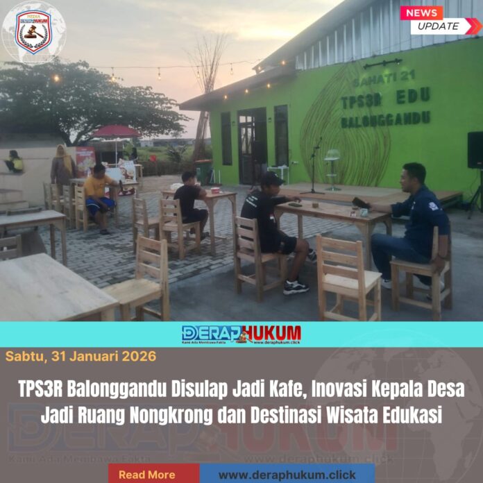Karawang, Jawa Barat | Deraphukum.click | Tempat Pengolahan Sampah Reduce, Reuse, Recycle (TPS3R) Edu Balonggandu, Kecamatan Jatisari, Kabupaten Karawang, kini tampil jauh berbeda. Di bawah kepemimpinan Kepala Desa Balonggandu, Anto Suheryanto atau yang akrab disapa Ki Quwu Abeng, kawasan TPS3R disulap menjadi tempat kafe terbuka yang nyaman untuk nongkrong dan ngopi, sekaligus destinasi wisata edukasi berbasis lingkungan.