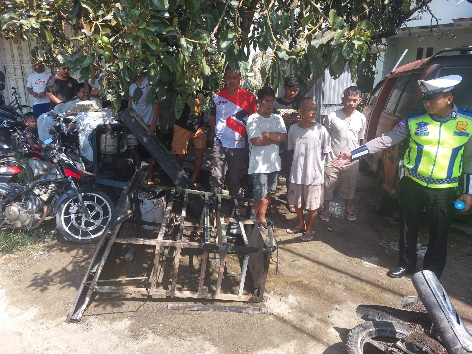 Sesampainya di lokasi kejadian, motor tiba-tiba oleng ke arah kanan dan menghantam rak bensin eceran milik warga setempat. Benturan keras tersebut seketika memicu kobaran api yang langsung menyambar kendaraan serta orang-orang yang berada di sekitar kios.
