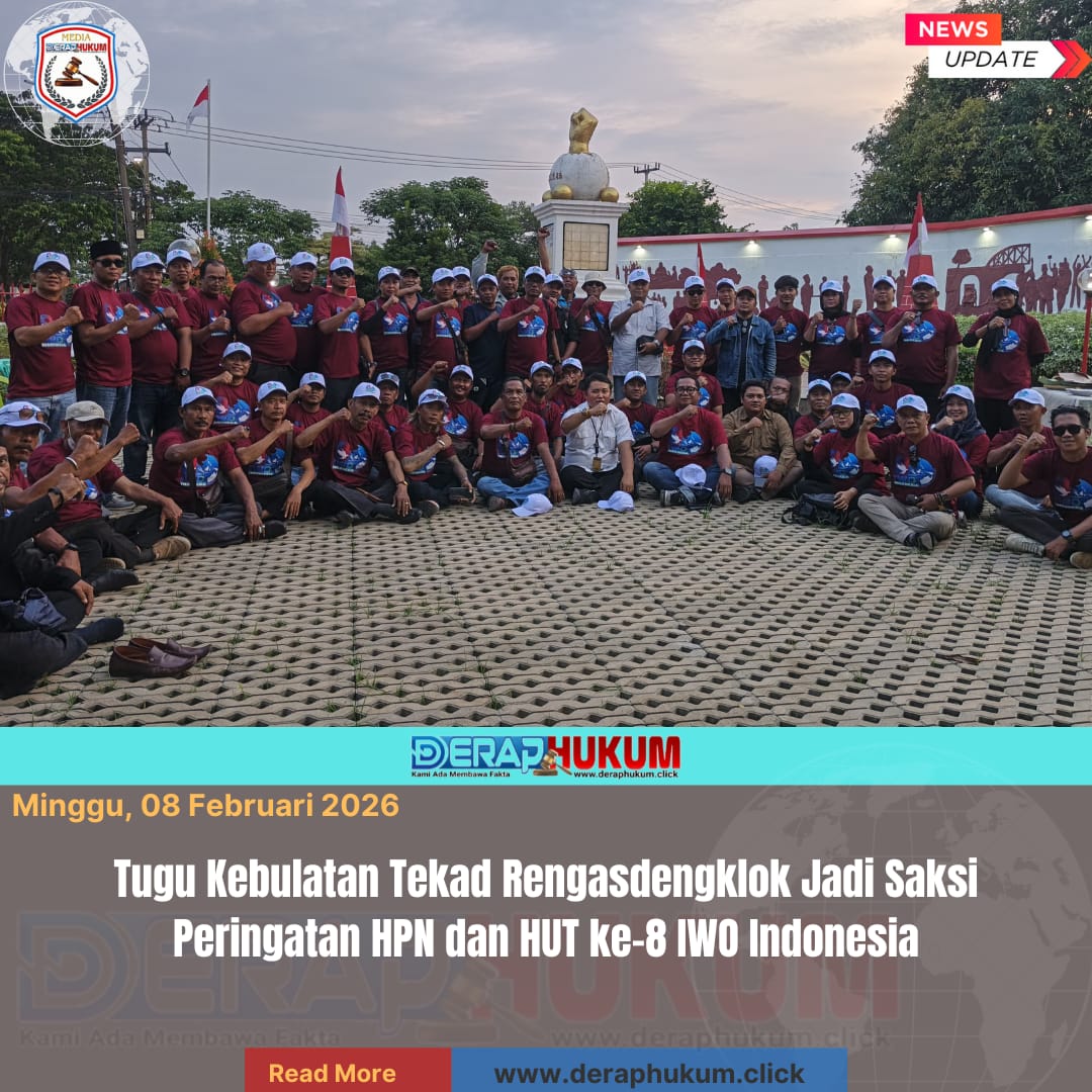Karawang, Jawa Barat | Deraphukum.click | Peringatan Hari Pers Nasional (HPN) yang dirangkaikan dengan Hari Ulang Tahun (HUT) ke-8 Ikatan Wartawan Online Indonesia (IWOI) di Kabupaten Karawang berlangsung khidmat dan penuh semangat. Kegiatan tersebut digelar di kawasan bersejarah Tugu Kebulatan Tekad Rengasdengklok, Minggu (8/2/2026).