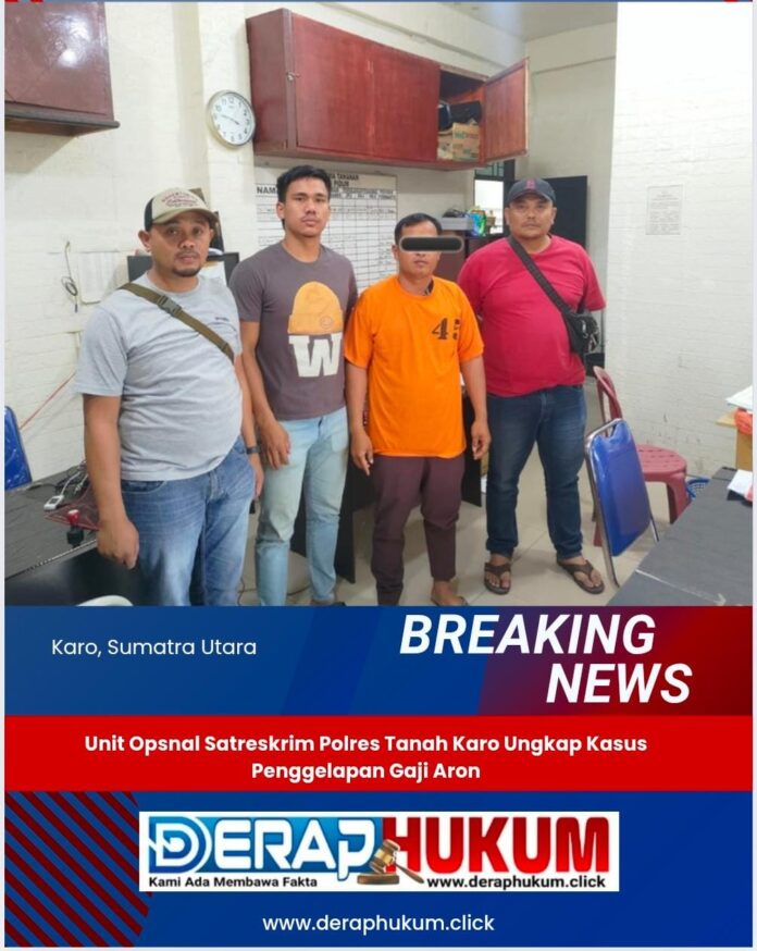 KARO | Deraphukum.click | Unit Opsnal Sat Reskrim Polres Tanah Karo berhasil mengungkap kasus penggelapan uang senilai Rp22.293.000, yang dilakukan oleh ST(35), petani warga Perumahan Residence 2 Korpi, Desa Gurusinga, Kecamatan Berastagi, Kabupaten Karo. Penangkapan tersangka dilakukan pada Minggu(8/12/2024), pukul 14.00 WIB, di rumah tersangka.