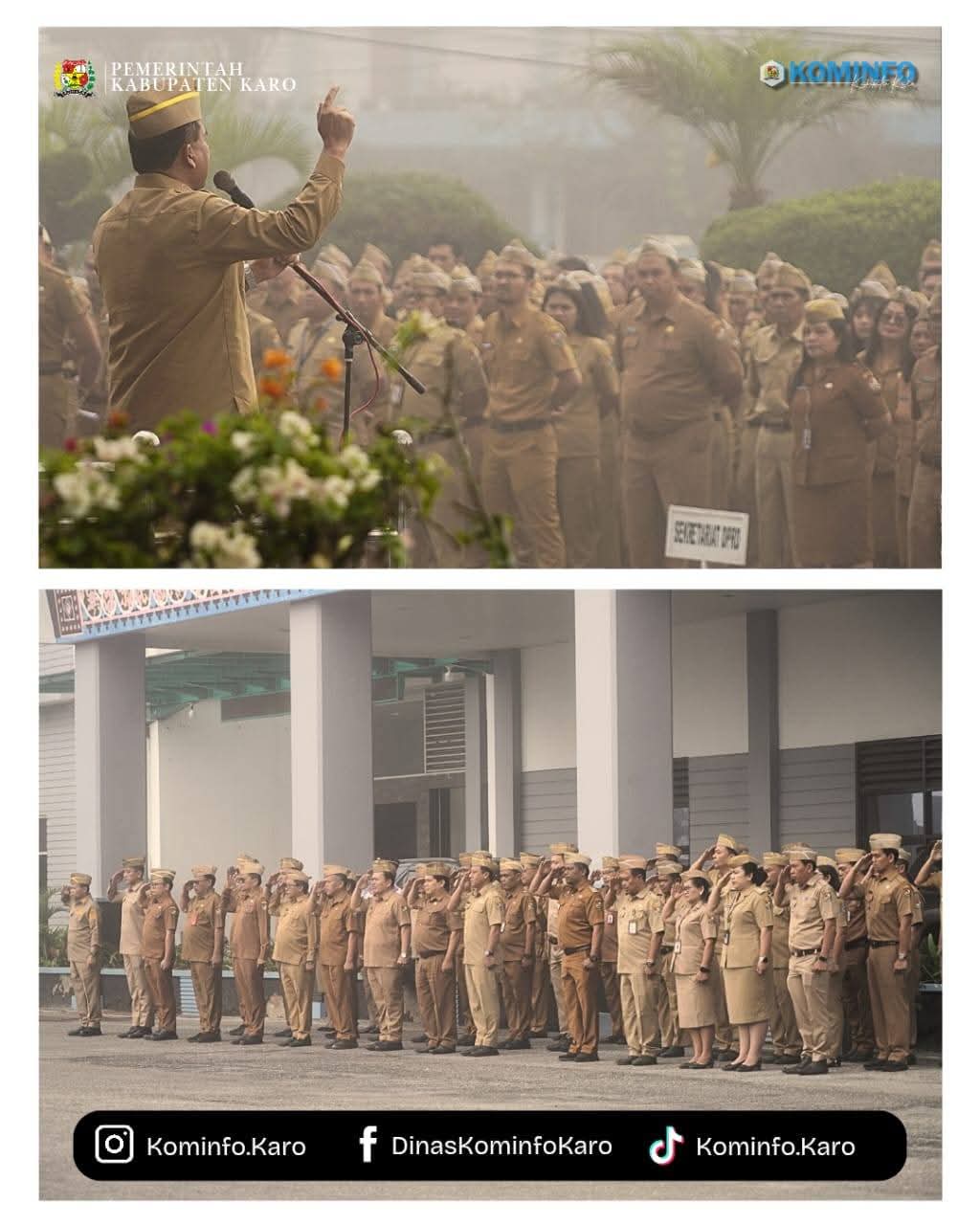 Meskipun suasana Kota Kabanjahe diselimuti kabut tebal, antusiasme dan kedisiplinan para ASN tetap terlihat tinggi, ​Apel gabungan ini dipimpin langsung oleh Bupati Karo, Brigjen Pol (Purn) Dr. dr. Antonius Ginting, Sp.OG., M.Kes.