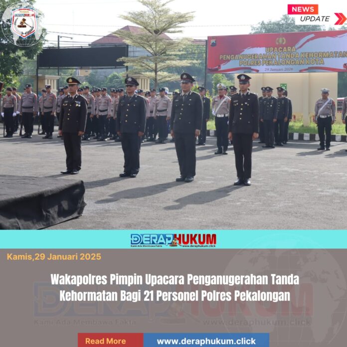 Pekalongan Kota, | Deraphukum.click | Polres Pekalongan Kota – Polda Jateng – Polres Pekalongan Kota, Polda Jawa Tengah, menggelar upacara penganugerahan Tanda Kehormatan Bintang Bhayangkara Nararya dan Satyalancana Pengabdian kepada sejumlah personel yang dinilai memiliki dedikasi serta loyalitas tinggi kepada bangsa dan negara. Kegiatan berlangsung di halaman Mapolres Pekalongan Kota, Jalan P. Diponegoro No. 19, Kamis (29/1/2026) pagi.