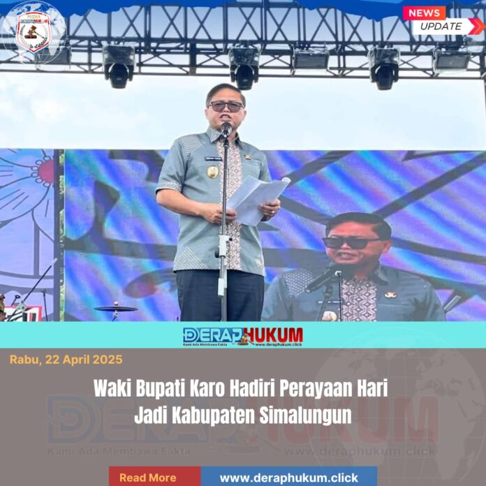 KARO, l Deraphukum.click l Sebagai perwakilan dari Pemerintah Kabupaten (Pemkab) Karo dalam hal ini, Bupati Karo, Brigjen Pol (Purn.) Dr. dr. Antonius Ginting, Sp.OG., M.Kes., yang diwakilkan oleh Wakil Bupati Karo, Komando Tarigan, S.P, turut hadiri perayaan Hari Jadi Kabupaten Simalungun yang ke- 193 yang diselenggarakan di Pematang Raya pada Sabtu (18/04/2026).