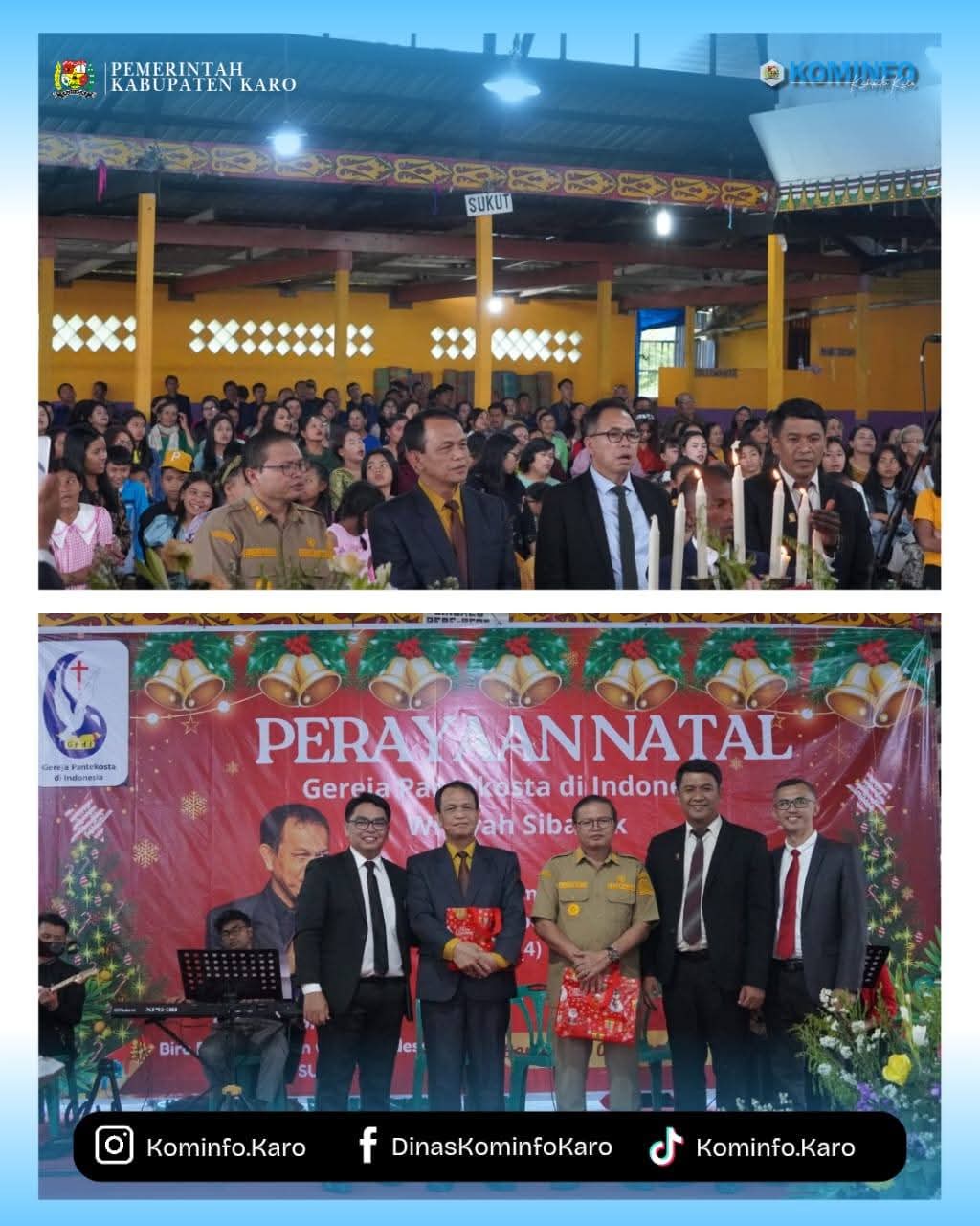 Bupati Karo Brigjen Pol (Purn) Dr. dr. Antonius Ginting, SP.OG, M.Kes., yang diwakili oleh Wakil Bupati Karo, Komando Tarigan, SP hadiri Perayaan Natal Gereja Pantekosta di Indonesia Wilayah Sibayak bertempat di Aula GBKP Jalan Udara Berastagi pada hari Senin, (01/12/2025)