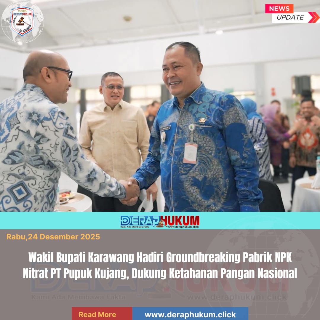 KARAWANG,Jawa Barat | Deraphukum.click | Mewakili Bupati Karawang, Wakil Bupati Karawang menghadiri kegiatan Groundbreaking Pabrik NPK Nitrat milik PT Pupuk Kujang, sebuah langkah strategis dalam memperkuat ketahanan pangan nasional melalui pengembangan industri pupuk modern dan berkelanjutan.