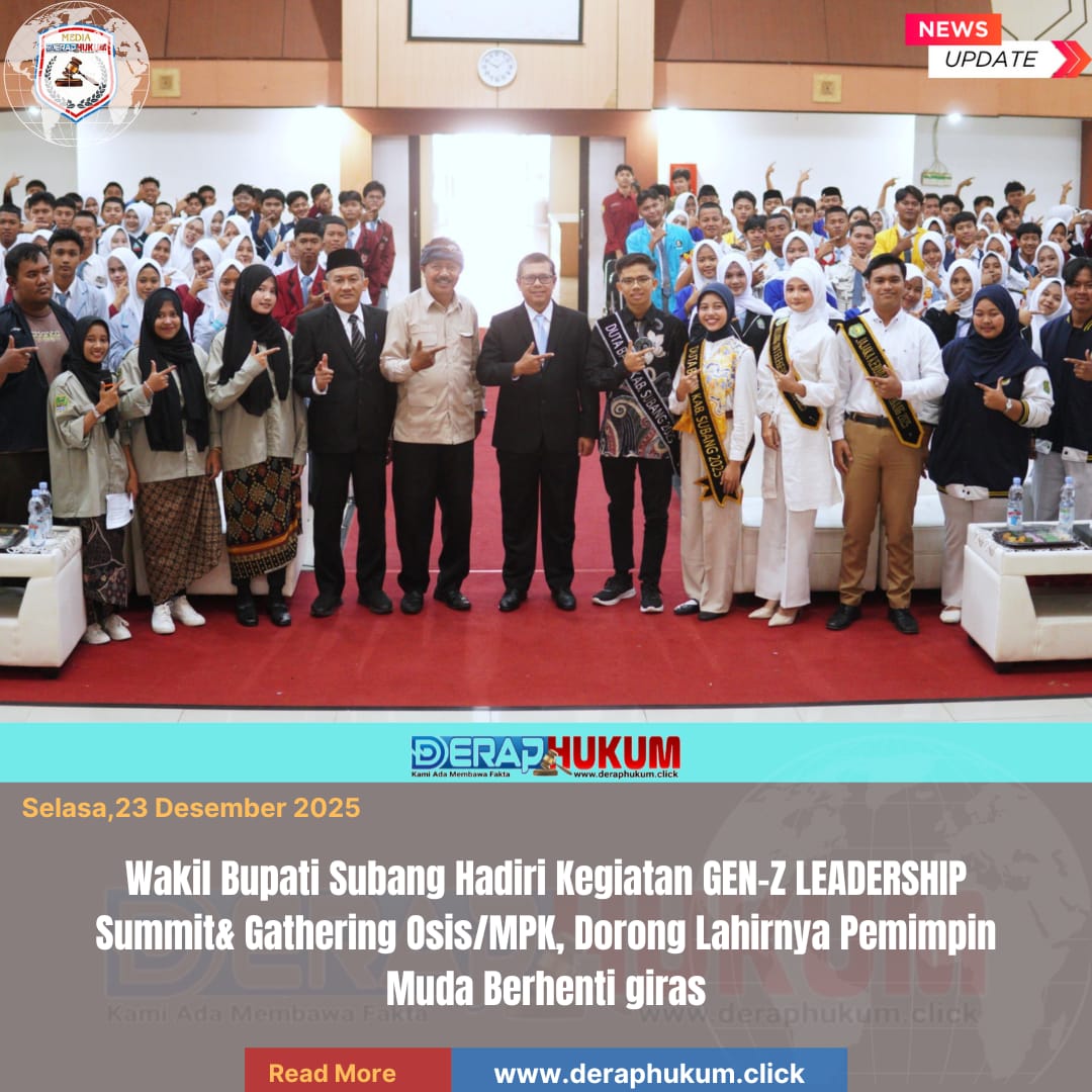 Subang,Jawa Barat l Deraphukum.click l Wakil Bupati Subang H. Agus Masykur Rosyadi menghadiri gelaran acara Gen-Z Leadership Summit & Gathering Pengurus OSIS/MPK Kabupaten Subang yang berlangsung di Aula Pemerinrah Daerah Kabupaten Subang, pada Senin (22/12/2025)