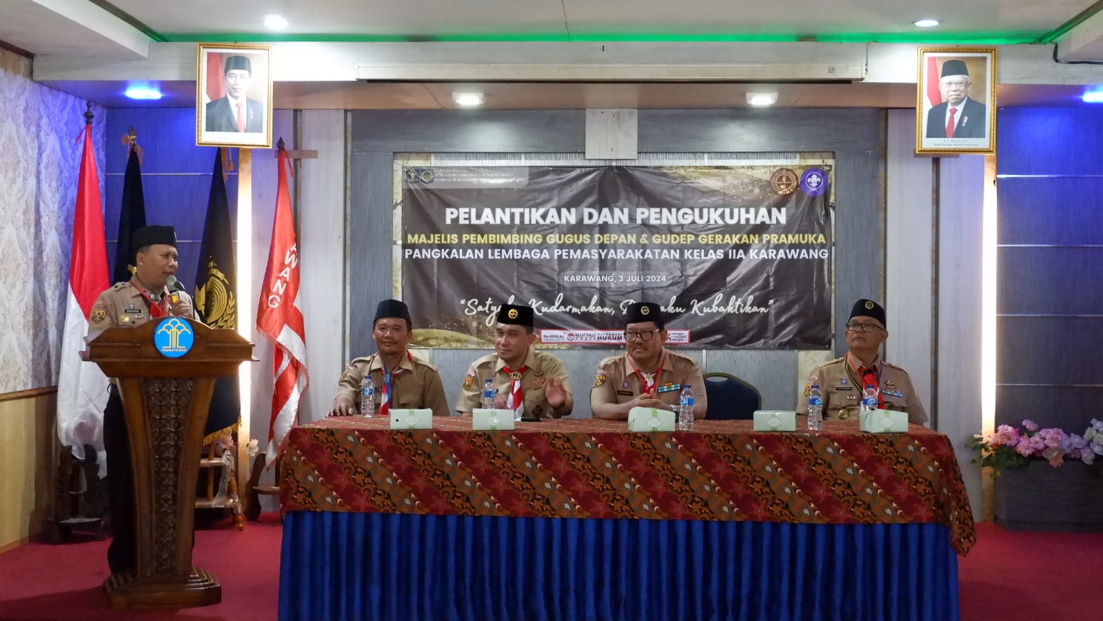 Kegiatan Pelantikan dan Pengukuhan Mabigus dan Gudep Pangkalan Lapas Kelas IIA Karawang berlangsung di Aula Sahardjo Lapas Kelas IIA Karawang yang dihadiri langsung yang dihadiri oleh Wakil Ketua Bidang Orgakum Kwarcab Karawang Supandi, Wakil Ketua Bidang Pembinaan Anggota Muda Muslih Hidayat, Sekretaris Kwarcab Karawang Hari Hardianto, Ketua Kwartir Ranting Karawang Timur Anah Mulyanah dan seluruh Pejabat Struktural Lapas Kelas IIA Karawang.