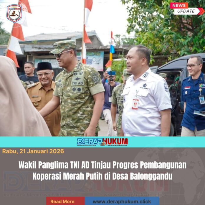 Karawang, Jawa Barat | Deraphukum.click | Wakil Panglima TNI Angkatan Darat, Jenderal TNI Tandyo Budi Revita, melakukan kunjungan kerja ke Kabupaten Karawang dengan meninjau langsung progres pembangunan Koperasi Desa/Kelurahan Merah Putih (KDKMP) yang berlokasi di Dusun Perum Bumi Cikampek Baru, Desa Balonggandu, Kecamatan Jatisari, kabupaten karawang Selasa 20 Januari 2026.