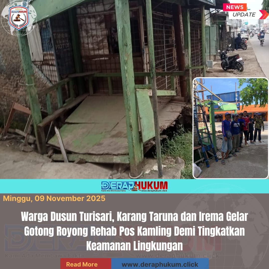 KARAWANG, JAWA BARAT | Deraphukum.click | Semangat kebersamaan dan kepedulian terhadap lingkungan kembali ditunjukkan oleh warga Dusun Turisari RT 006 RW 003, Desa Mekarmaya, Kecamatan Cilamaya Wetan, Kabupaten Karawang. Warga bersama Karang Taruna dan Irema secara sukarela menggelar kegiatan gotong royong untuk merehabilitasi Pos Kamling yang kondisinya sudah rusak dan lapuk dimakan usia.
