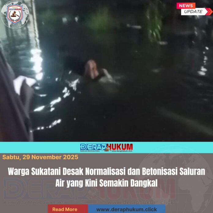 KARAWANG, Jawabarat | Deraphukum.click | Warga perumahan Pondok Mutiara, Kampung Sukatani, Desa Pangulah Utara, Kecamatan Kotabaru, Karawang, kembali menyuarakan keluhan terkait kondisi saluran air di wilayah mereka. Saluran yang menjadi jalur utama pembuangan air tersebut kini dilaporkan semakin dangkal dan menyempit sehingga rawan menimbulkan banjir saat musim hujan.