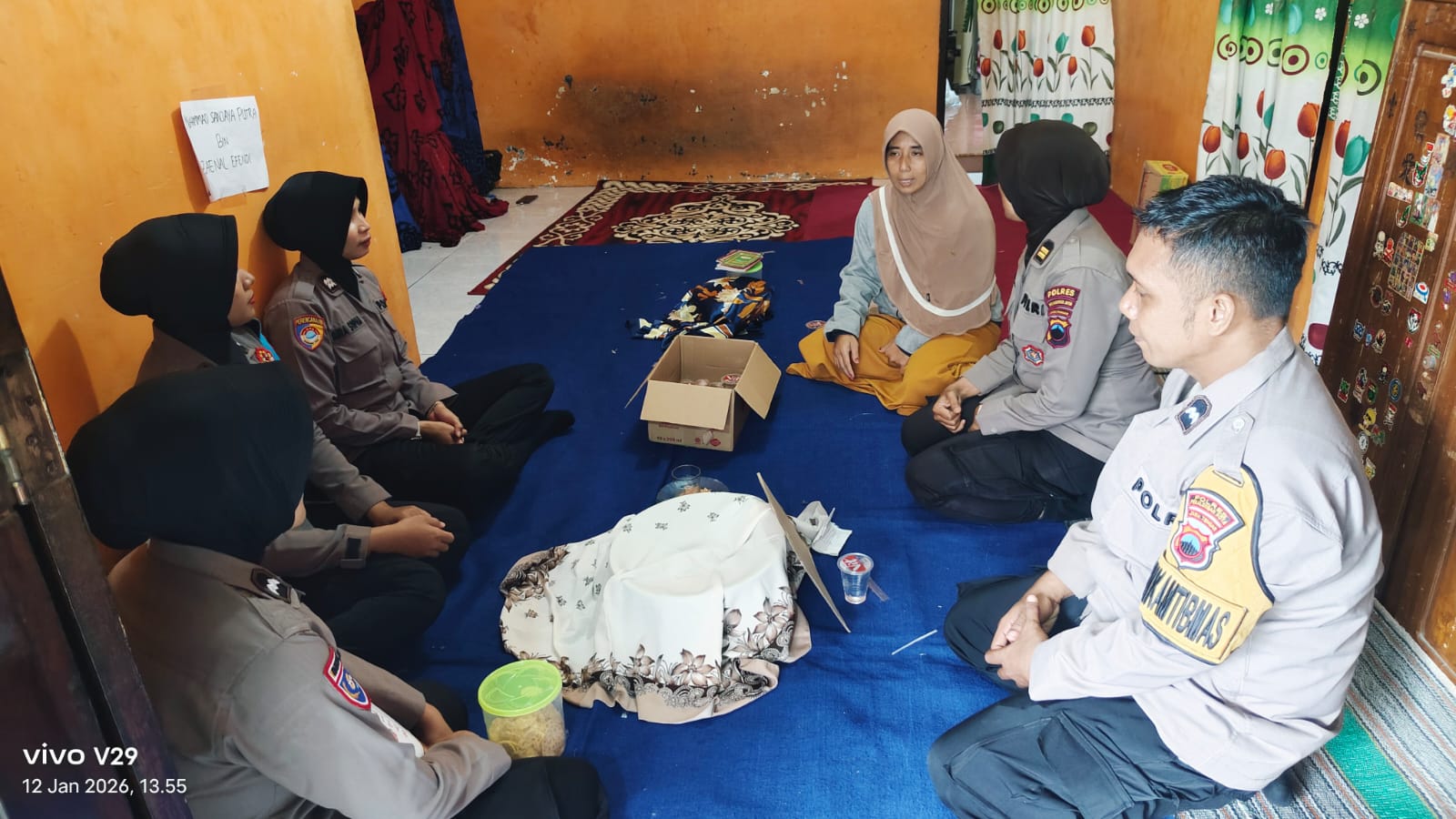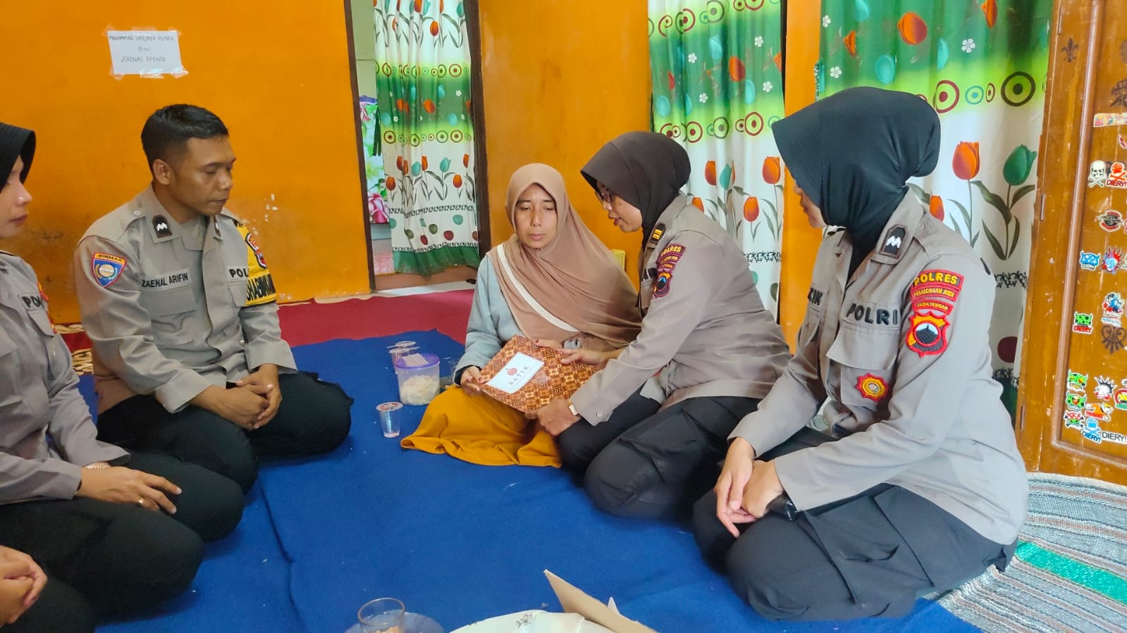Penyaluran donasi dipimpin oleh Iptu Lestari, S.H., bersama sejumlah personel Polwan Polres Pekalongan Kota, didampingi Bhabinkamtibmas Kelurahan Kuripan Yosorejo. Kehadiran para Polwan disambut haru oleh pihak keluarga, yang masih dalam suasana duka mendalam.