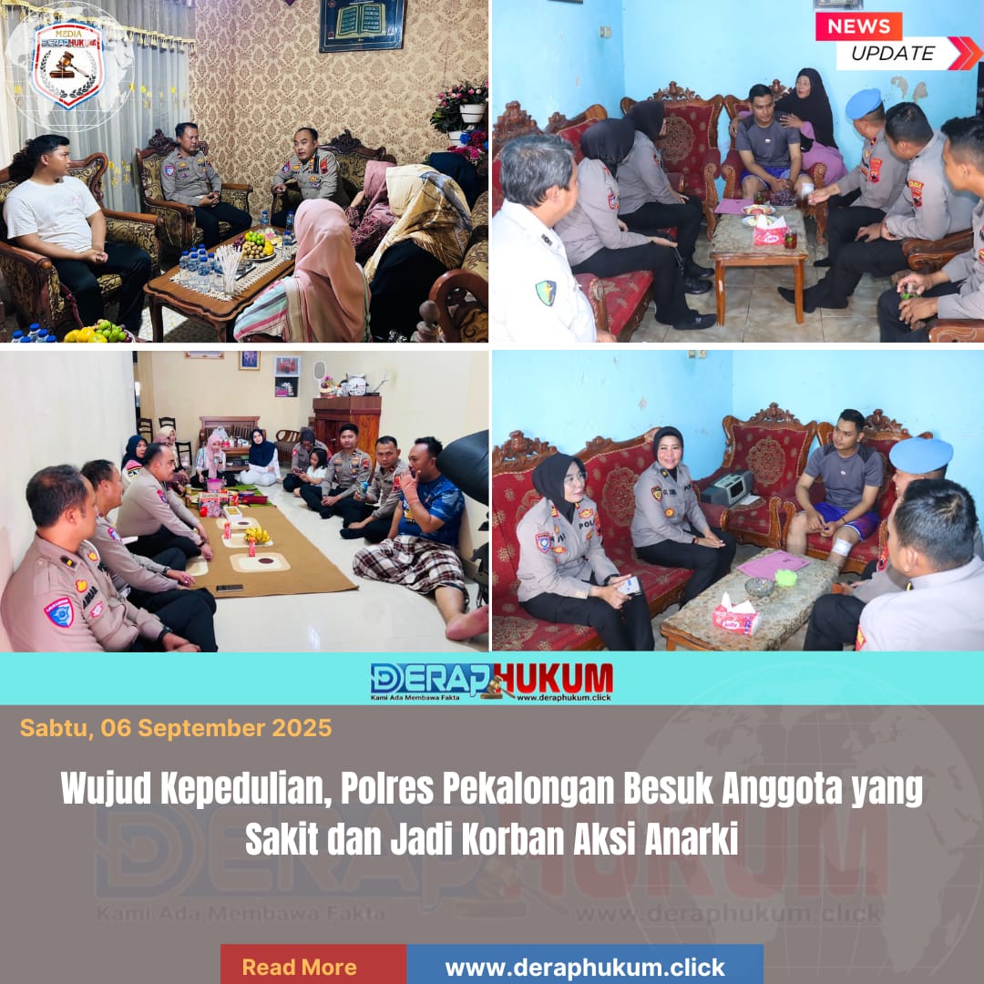 Pekalongan,Jawa Tengah | Deraphukum.click | Polres Pekalongan – Polda Jawa Tengah — Sebagai bentuk kepedulian dan solidaritas terhadap anggota yang mengalami musibah, Polres Pekalongan melaksanakan kegiatan anjangsana dengan membesuk personel yang tengah dalam proses pemulihan kesehatan, Kamis (04/09/2025).