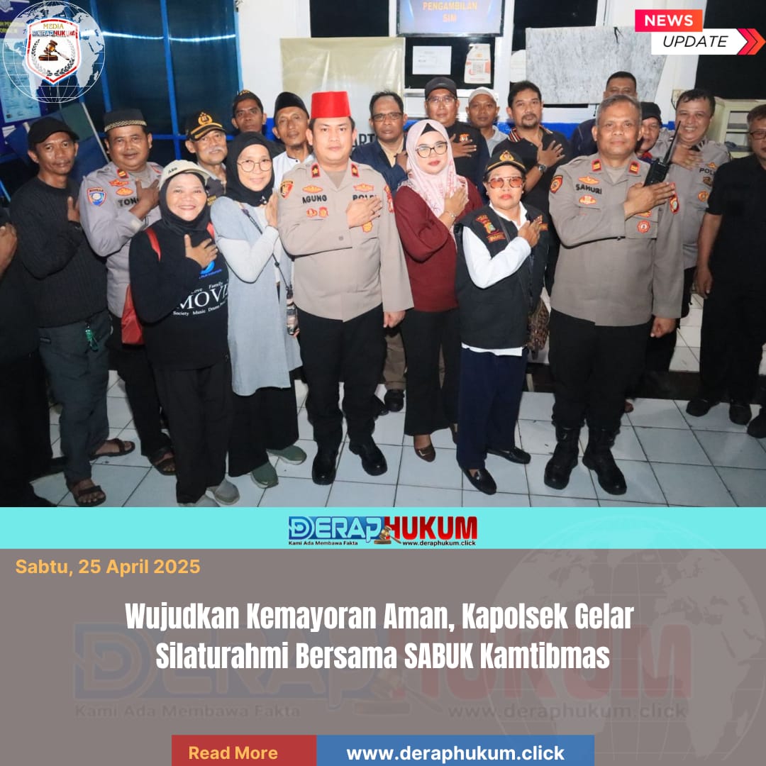 Jakarta Pusat, | Deraphukum.click | Dalam rangka memperkuat sinergi antara Polri dan masyarakat, Kapolsek Kemayoran Kompol Dr. Agung Ardiyansyah, S.H., M.H., menggelar kegiatan silaturahmi bersama anggota SABUK Kamtibmas di Mako Polsek Kemayoran, Jumat malam (24/4/2026). Kegiatan ini menjadi momentum penting untuk mempererat hubungan kemitraan serta meningkatkan partisipasi warga dalam menjaga keamanan dan ketertiban masyarakat di wilayah Kemayoran.