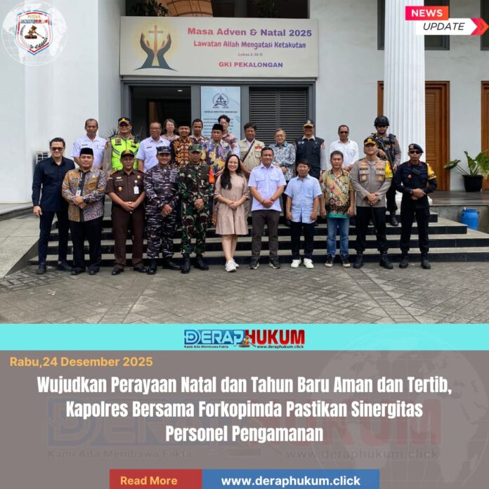 Pekalongan,Jawa Tengah | Deraphukum.click | Polres Pekalongan - Polda Jateng - Menjelang puncak perayaan Natal, jajaran Forkopimda Kabupaten Pekalongan melakukan pemantauan intensif di sejumlah...