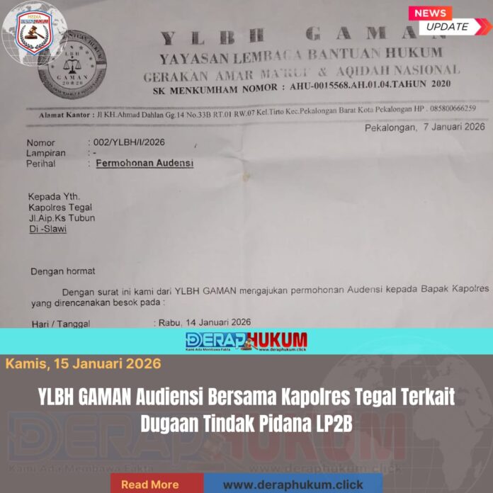 Slawi, Jawa Tengah | Deraphukum.click | Yayasan Lembaga Bantuan Hukum (YLBH) Gerakan Amar Ma’ruf dan Aqidah Nusantara (GAMAN) Pekalongan melakukan audiensi bersama Kapolres Tegal pada Rabu (14/1/2026).