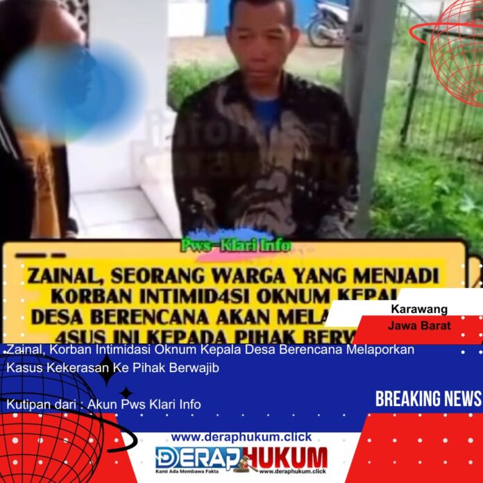 KARAWANG-JABAR | Deraphukum.click | – Seorang warga Desa Pasir Mulya, Kecamatan Majalaya, Kabupaten Karawang, bernama Zainal, mengaku mengalami intimidasi dan tindakan kekerasan yang diduga dilakukan oleh oknum kepala desa berinisial AM. Insiden ini terjadi pada Rabu, 5 Februari 2025, sekitar pukul 15.00 WIB di depan rumah korban.