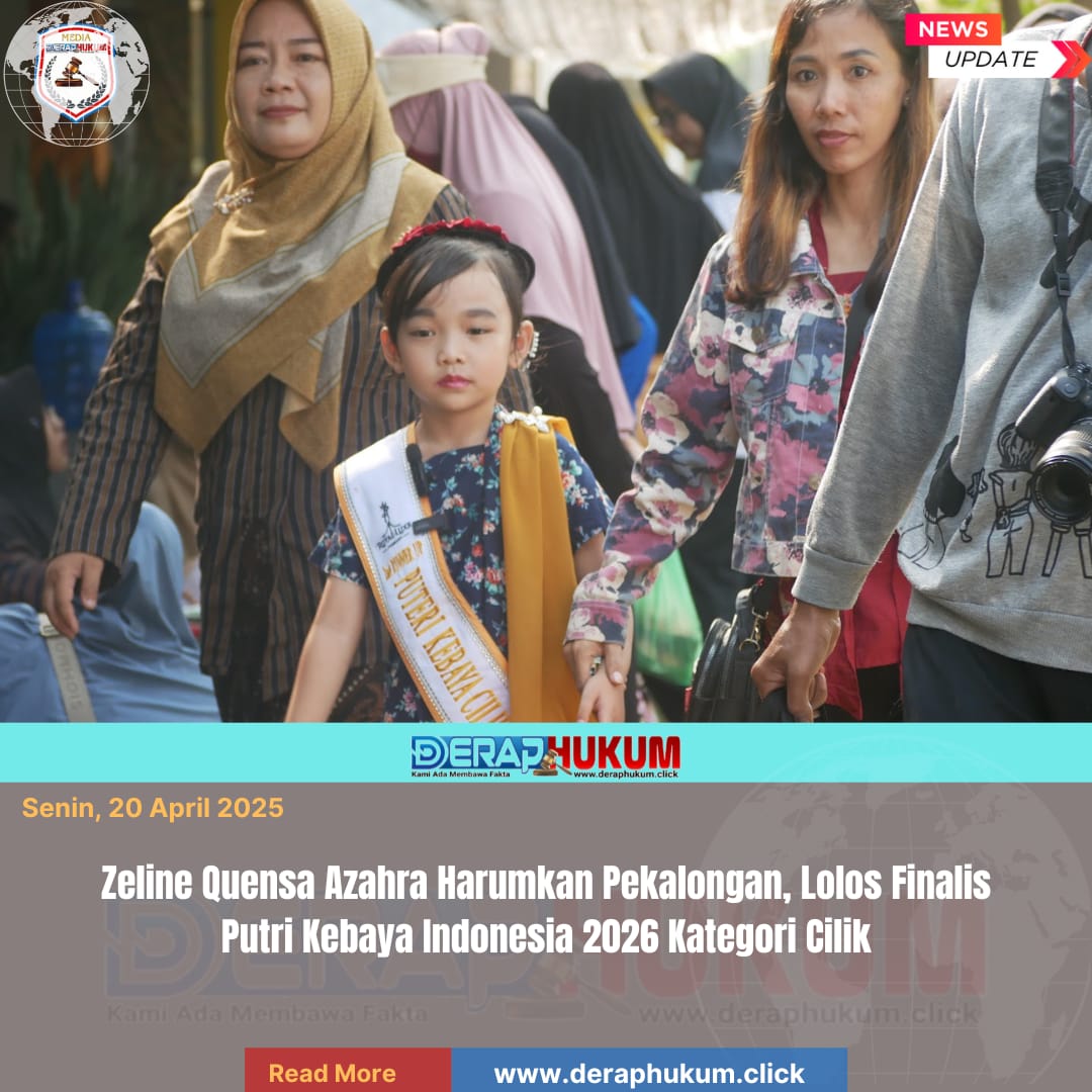 Pekalongan,Jawa Tengah | Deraphukum.click | Prestasi membanggakan kembali ditorehkan generasi muda asal Pekalongan, Jawa Tengah. Zeline Quensa Azahra, putri cilik berbakat, berhasil lolos sebagai Finalis Putri Kebaya Indonesia 2026 kategori Cilik, mewakili Jawa Tengah 3.